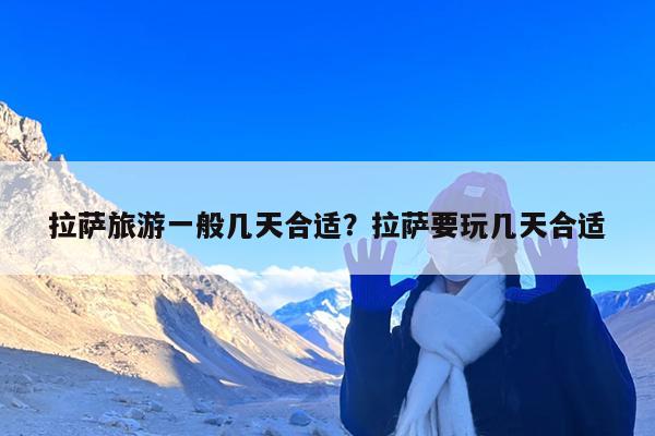 在拉萨游玩3-5天为宜,拉萨市内比较著名的寺庙、甜茶馆、酸奶店、饰品街慢徒步3-5天可以游览完毕,如果去周边地区的景点,每个地区加3天,这座城市生活的久会有更深的体会,可以住20-30天。每年的5-10月,是较适合去拉萨的时间,此时景色较好,含氧量充足,气候宜人。